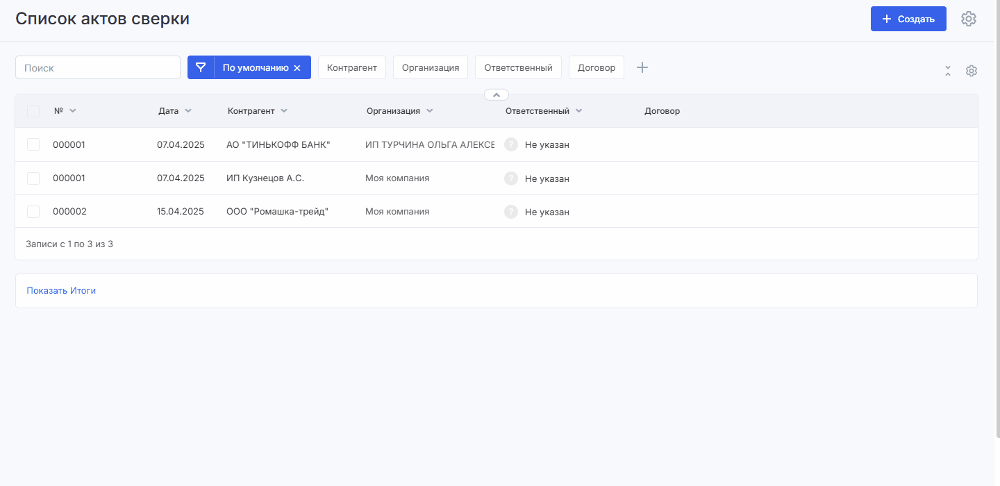Бесконечные проверки таблиц в конце каждой сделки ушли в прошлое — ведь в системе появились акты сверки. Составить их можно всего за минуту, ведь все необходимые данные по заданному периоду собираются автоматически.
