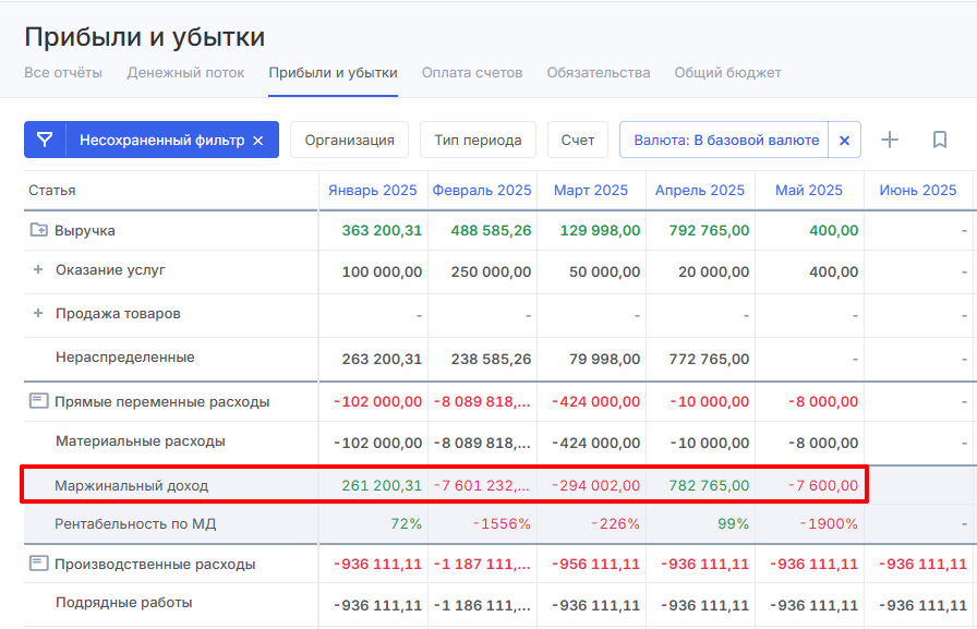 Новая метрика в отчете ПиУ — маржинальная прибыль. С ее помощью вы сможете высчитать разницу между доходом от продаж и переменными издержками, что связаны с производством и реализацией товара.